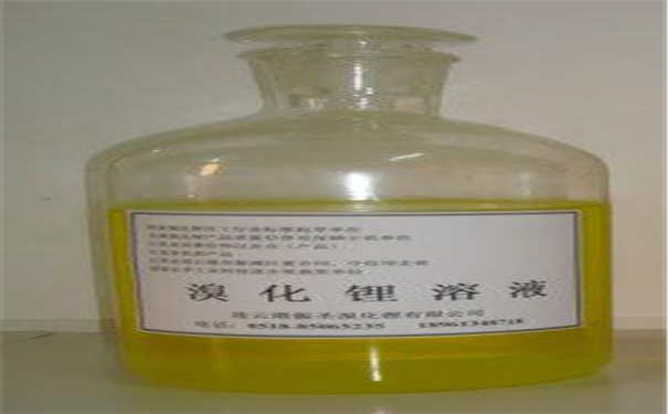供制冷機應用的溴化鋰,一般以水溶液的形式供應。性狀為無色透明液體;濃度不低于50%;水溶液PH值8以上。